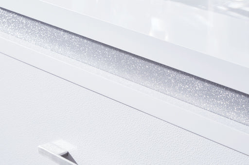 View full detailsThis dresser is a showstopper, bringing a touch of modern glamour to your sanctuary. A sleek white finish and inset glitter accents create a sophis...