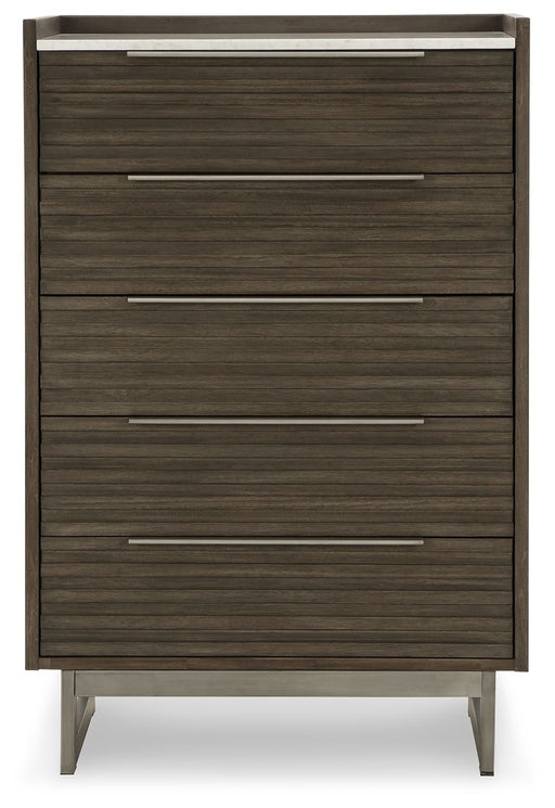 View full detailsClean, simple and beautiful. This chest provides ample space for clothing, accessories and spare bed linens. Pewter-tone knobs give a slightly indu...