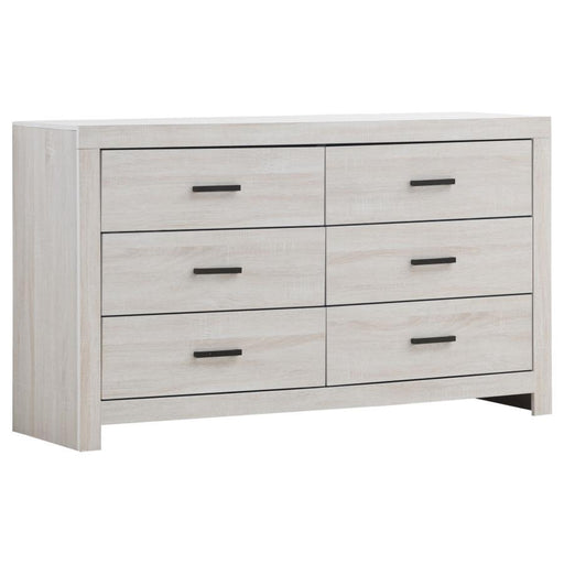 View full detailsLight distressing offers depth and dimensionality to a modern six-drawer dresser. Perfect for clothing and other accessories, it features a double ...