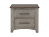 2 Drawer, Nightstand. The Ridge nightstand features two spacious drawers, offering plenty of storage for all your bedroom essentials. It features sleek metal handles that enhance its modern aesthetic. Made from Melina and poplar wood, this collection guarantees durability and timeless appeal. The elegant light gray finish and brown tops blend seamlessly with any décor style. Additionally, the channeled design adds a touch of sophistication and texture to the furniture.
