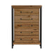 The Industrial Modern style of the Norcross Bedroom group blends the natural beauty of its rustic veneer with its clean lines and abundant metal accents throughout. This bedroom collection features custom designed wood and metal hardware and is finished in a warm and inviting hickory finish.