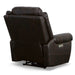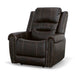 The generous padding and heavy-thread stitching detail of the Oscar power recliner with power headrest instantly grabs your attention and welcomes you to take a seat. Nailhead trim traces the edges of the arm fronts to highlight the welcoming silhouette, while an extended footrest provides additional leg rest space for taller users. Customize your sit with power recline and headrest that can be adjusted at the touch of a button. Outfitted in a dark, molasses brown fabric, this recliner brings a leather look to your room with the softness and comfort of fabric.