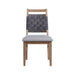 The Oslo Dining Collection is constructed with wire brushed oak veneer and offered in a Weathered Chestnut finish. Unique features of this collection are the patterned veneer table and sideboard tops, woven bonded leather strap chair backs with bronze nail accents, and large bar pull hardware with a dark bronze finish.