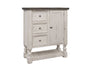 3 Drawer, 1 Door Chest. Exuding farmhouse chic with just the right touch of old-world charm, the Stone Collection is meticulously crafted from solid pine wood. The wood is lightly distressed, showcasing a white finish and complemented by weathered tops.