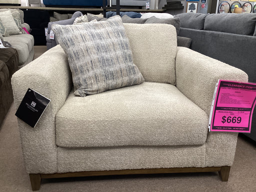 View full detailsFlexSteel Kingman stationary chair upholstered in a beige fabric with tapered legs