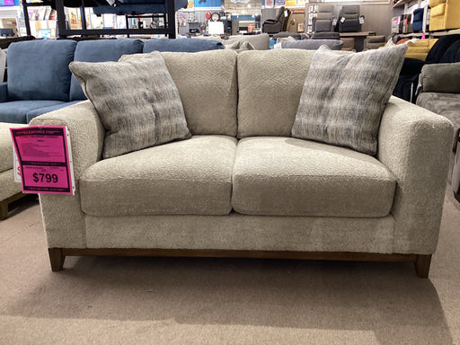 FlexSteel Dana stationary sofa on a light brown fabric with tapered legs