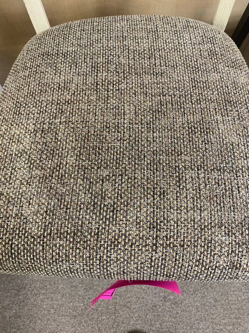 Ashley Bolanberg Counter stool 24” with back in an off white distressed finish with brown tweed upholstered seat