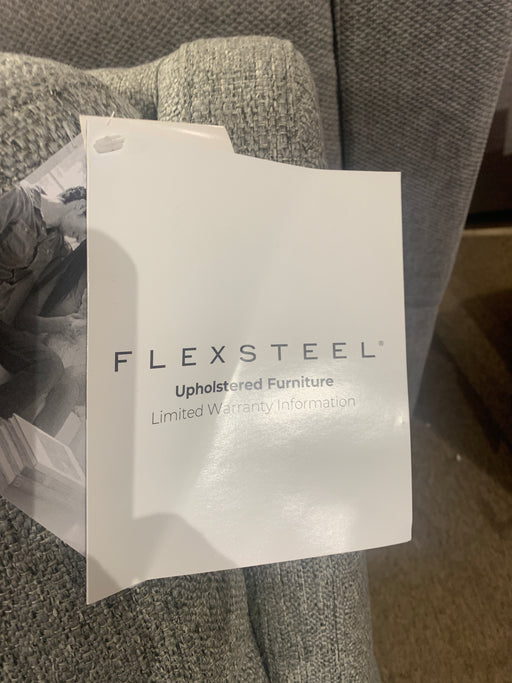 FlexSteel Catalina power recline sofa with power headrest and usb port upholstered in light gray fabric matching recliner in stock while supplies ...