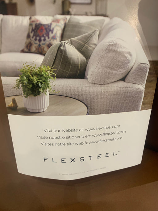 FlexSteel Dana stationary sofa on a light brown fabric with tapered legs