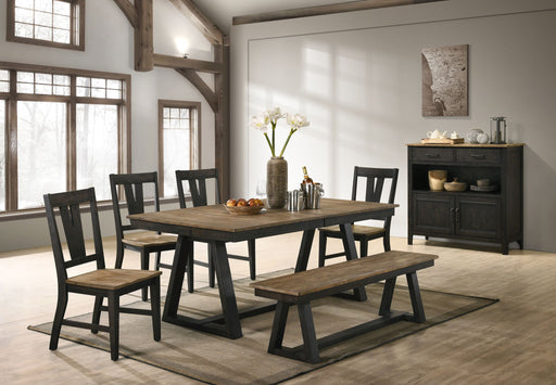 View full detailsThe Transitions Dining Collection is constructed from solid acacia and is offered in a beautifully rustic two-toned driftwood and sable finish. Two...