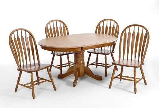 View full detailsConstructed of Solid Oak. Transitional Country style. The Weathered Chestnut finish gives the group a relaxed feel. The hardware has an antique bra...
