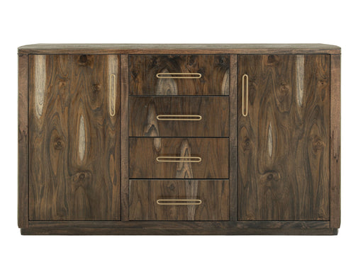 View full detailsSheridan Pointe - Buffet - Vintage NaturalProduct Features Burnished Brass Knob Hardware 4 Doors Wrapped in Danish Cord Framed End Panels Softly Ro...