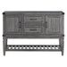 The Foundry Dining Collection is offered in a wire-brushed Pewter Finish for a natural, rustic appeal. Constructed from Oak Veneer and Select Hardwood, with metal accent plates throughout.