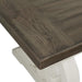 The Drake Dining Collection comes in a beautiful Two-Toned Rustic and French Finish. This unique collection also features an antique harp style base on tables, constructed from rustic knotty Oak Veneer and Select Hardwood.
