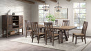 The Transitions Dining Collection is constructed from solid acacia and is offered in a beautifully rustic two-toned driftwood and sable finish. Two extension table options are offered in counter and dining variations, both featuring 20” storing leaves and metal tubular stretchers and accents. Dining chair, bench and counter stool feature ergonomic wooden seats shaped for comfort, the Sideboard features plentiful storage options as well, with weathered brass hardware.