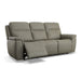 Transform your living space with the Sawyer power reclining sofa with power headrests and lumbar, a perfect blend of comfort and style. This stunning design features high-quality, gray top grain leather upholstery with unique cross-stitching and a distinct arm silhouette, adding a sophisticated touch to any room. Customize your comfort with power recline, headrests and lumbar support at the touch of a button and experience Zero Gravity reclining, relieving pressure from your joints. Designed for durability and longevity, this sofa includes Flexsteel’s patented Blue Steel Spring™, providing unmatched seat comfort and durability that you can count on.