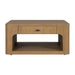 Simple geometry creates a look of timeless elegance for your living space with the Normandy rectangular table. Inspired by European architecture, this coffee table offers a minimalist silhouette featuring an inviting, warm driftwood finish. Designed for both style and functionality, it includes a convenient storage drawer to keep your essentials organized. Crafted with sustainability in mind, this Normandy coffee table is comprised of FSC-certified wood with a scratch-resistant finish for added durability. Standing on a dignified, strong frame, this piece is sure to be a conversation starter.