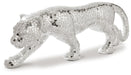 Decorate your home with this iconic mixed media sculpture. Featuring mosaic glass and paper composite, this panther will add an exotic element to any space. Create a fierce look in your bedroom or luxurious allure in your living room with this unique and thought-provoking piece.