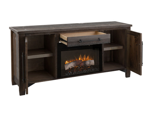View full detailsTown - Electric Fireplace - MulticolorProduct Features Crafted of pine wood. Multi-step lacquer in brown and gray highlights. Mortise and tenon con...