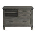 The Foundry Home Office Collection is offered in a wire-brushed Pewter Finish for a natural, rustic appeal. Constructed from Oak Veneer and Select Hardwood, with metal accent plates throughout.