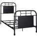Add a unique look to your home with the Vintage Series Metal Bed. Crafted of metal tube and finished in a beautiful antique with wear thru. The headboard and footboard feature a softly shaped cap rail and turned metal spindles highlighting a center panel. The metal side rails and bed slats are finished in the antique with wear thru. The Vintage Series headboard will work with a metal bed frame making it perfect in small spaces and any decor from cottage to farmhouse.