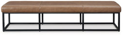 This accent bench takes a contemporary approach to everyday function. Showcasing a sleek combo of caramel leather upholstery and a black frame, it's a chic and convenient seating solution. Place this bench by the entryway, or at the foot of your bed, as a spot for slipping on shoes or resting bags and purses.