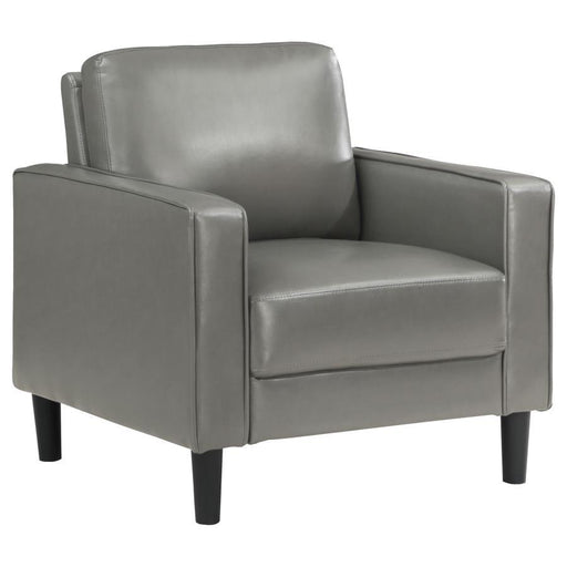 View full detailsSeamlessly blend contemporary aesthetics and uncompromising comfort with this recliner. Its handsome charcoal-hued faux leather has a tailored appe...
