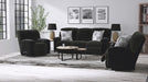 Comet features a luxurious faux fur stripe and plush polyester inside/outside fabric combination. Contrasting accent pillows offer visual interest while Lay Flat reclining and Power Recline upgrade provide ultimate seating comfort. Comet is available in one color: Black.