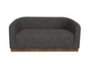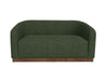 Wooden Frame & Base, Loveseat. The Suomi Collection, distinguished by its flowing form, embodies the Zen-inspired Japandi style. This loveseat minimalist design is harmoniously complemented by its wooden base crafted from pine wood, with its wraparound back seamlessly merging into rounded arms, creating a cradle for an exceptionally thick and comfortable cushioned seat