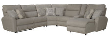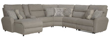 The McPherson contemporary farmhouse reclining sectional brings cozy comfort to any room. Sometimes reclining furniture has comfort but no style but the McPherson has it all! This sectional is covered in a soft textured chenille polyester fabric that is durable and easy to clean. Decorator accent pillows add to the look and comfort. The seating is constructed of individually pocketed coils encased in foam and topped with a layer of cool gel infused memory foam and wrapped in a layer of fiber to create super comfortable and consistent seating experience. Proudly made in the USA the McPherson is designed and constructed to be bigger, deeper and more comfortable. All steel seat boxes are used to add strength to the frame for years of worry free use.