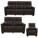 Treat yourself to high style and superior comfort with Crawford's triple power off-the-floor traditional design. Crawford includes power motion recline, a comfort-high back with power headrest, and power lumber support. Designed to emulate a stationary aesthetic, the silhouette features a fully finished back frame for 360-degree visual appeal. The slender flared arm design that is further embellished with head-to-head decorative nail trim creates an overall scale suitable for small living spaces. Additional features include a drop-down table in the center back of the sofa with a hard surface, cup holders, and USB & USB-C charging ports. Crawford is available in a selection of semi-aniline leather/match applications with heavy grain texture and subtle two-tone coloration that's finished for active family environments. Let Crawford become the focal point of your living space, where relaxation meets modern technology in perfect harmony.