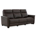 Treat yourself to high style and superior comfort with Crawford's triple power off-the-floor traditional design. Crawford includes power motion recline, a comfort-high back with power headrest, and power lumber support. Designed to emulate a stationary aesthetic, the silhouette features a fully finished back frame for 360-degree visual appeal. The slender flared arm design that is further embellished with head-to-head decorative nail trim creates an overall scale suitable for small living spaces. Additional features include a drop-down table in the center back of the sofa with a hard surface, cup holders, and USB & USB-C charging ports. Crawford is available in a selection of semi-aniline leather/match applications with heavy grain texture and subtle two-tone coloration that's finished for active family environments. Let Crawford become the focal point of your living space, where relaxation meets modern technology in perfect harmony.