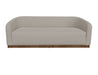 Wooden Frame & Base, Sofa. The Suomi Collection, distinguished by its flowing form, embodies the Zen-inspired Japandi style. This sofa minimalist design is harmoniously complemented by its wooden base crafted from pine wood, with its wraparound back seamlessly merging into rounded arms, creating a cradle for an exceptionally thick and comfortable cushioned seat
