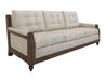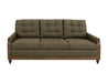 Wooden Frame & Base, Sofa. Transform your living space with this stunning wooden-framed sofa, which perfectly combines craftsmanship and comfort. The Xel-Ha II Collection features tufted back cushions upholstered in a green leather-like fabric, providing plush support and an elegant touch. The decorative throw pillows add a charming and warm accent to the overall design.