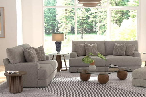View full detailsReddington is a stationary sofa group that the ultimate comfort of our Cuddler Cushion. This dual-fabric application is accented with an ecelectic ...