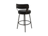 Wooden Frame & Metal Base, Upholstered Barstool. Introducing the Maison Bar Stool, a stylish and comfortable addition to your modern space. The frame features a black matte powder-coated finish that resists chipping, ensuring both durability and lasting beauty. The low, minimalistic backrest complements the seat, adding an elegant touch to the design.