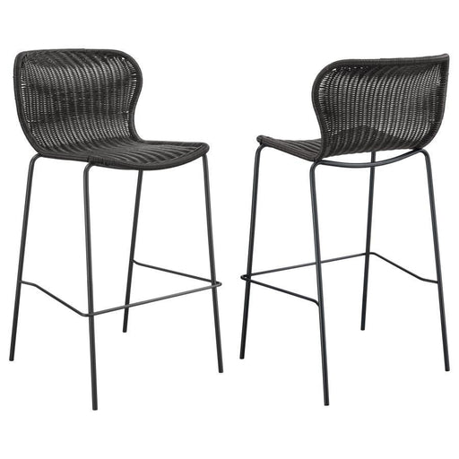 View full detailsThis pair of two stools offer a minimal look and a contemporary vibe. Supported by thin and tall frame in a black finish, it has an open and airy d...