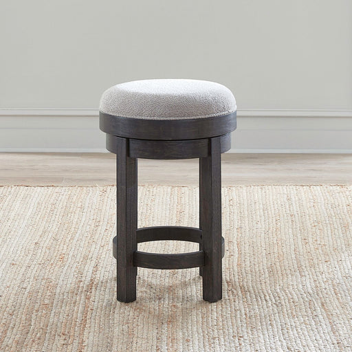 View full detailsAspen Skies round console stool offers a swivel base for easy movement with tapered legs. Features solid poplar legs and the upholstered seat for c...