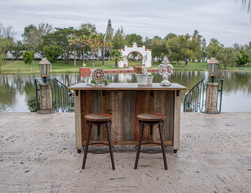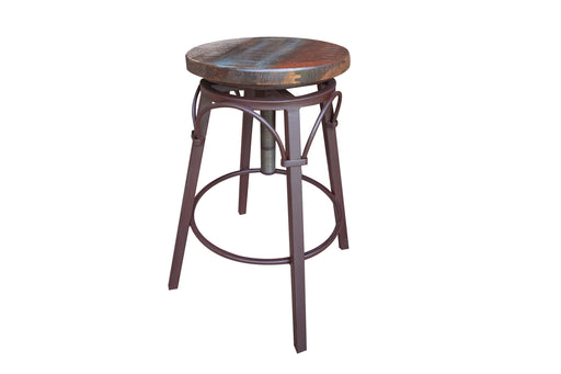 Wooden Seat Adjustable 24-30" Swivel Iron Base Barstool. Bring rustic charm to your home with the Antique Multicolor adjustable swivel barstool. Th...