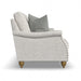 - Pleated, petite roll arms with soft curves for an elegant touch